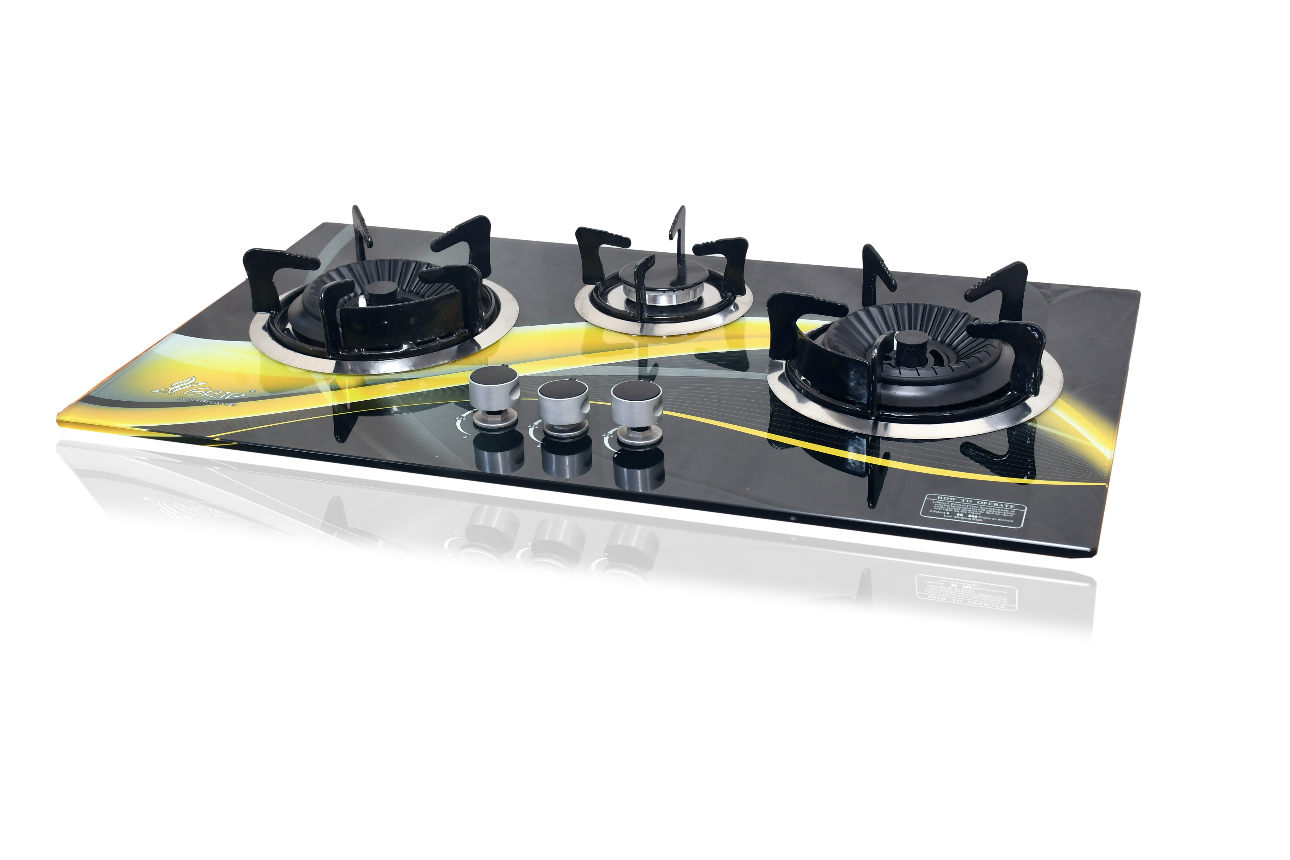 TOP : 10MM tempered GlassTop size: 29.5inch x 17inchcutting size: 27.5inch x 15inchtwin Cast iron Burner